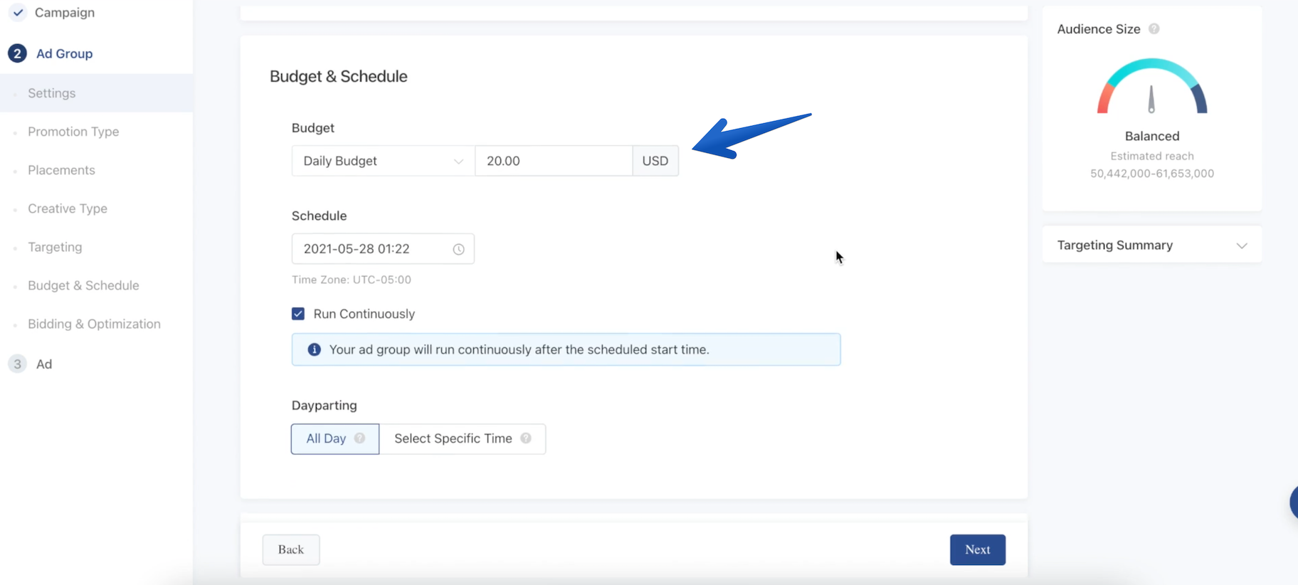 - Budget:minimum $20/day (as TikTok doesn’t allow a lower amount)
